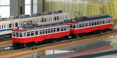 箱根登山鉄道モハ1+モハ2です。連結器はTN化の為に可動域を広げるためにスカートを一端切断して貼り直しました。氏曰く「グリーンマックスのモデルは(ディスプレー用で)走りませんのでトミックス動力ユニットを組み込んで走行可能にしました。実車は2027年に引退する予定ですからもう一度作ってみようかと思っています。」